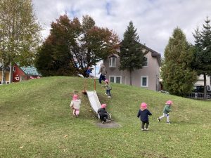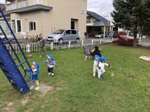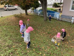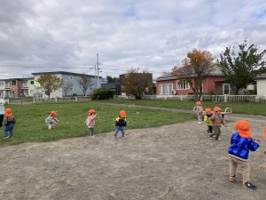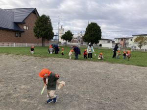 公園では待ちに待ったおやつを食べて元気いっぱいに!公園の中を端から端まで走って秋をさがしています🍁